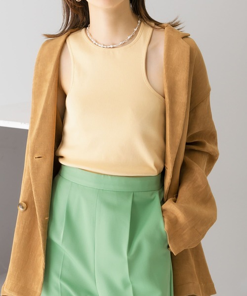 【ロングシーズンの活躍が期待できるアシメデザインタンク】さりげないアシメデザインが目を惹くタンクトップ。鎖骨下まで詰まっているので安心感があり、ラウンドされた裾もポイント◎ロングシーズンの活躍が期待でき、これからの季節はジャケットやシャツのインナーに最適です。※商品画像は、光の当たり具合やパソコンなどの閲覧環境により、実際の色味と異なって見える場合がございます。予めご了承ください。※商品の色味の目安は、商品単体の画像をご参照ください。-----------------------------透け感 : ややあり(IVORYのみ)伸縮性 : あり裏地 : なし光沢 : なしポケット : なし-----------------------------▼お気に入り登録のおすすめ▼お気に入り登録商品は、マイページにて現在の価格情報や在庫状況の確認が可能です。お買い物リストの管理に是非ご利用下さい。