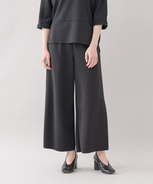 落ち感があり、しわになりにくく、ストレッチ性が抜群なアクアジャージー素材を使用したパンツ。 もちもちとしていて肌触りも良く、微光沢のある生地はきれいめ見えします。 ウエストはすっきりとした印象ですが、実はゴムがインされており、着用中はもちろん、着脱も楽ちんです。 ブラウスと合わせれば学校行事やお仕事に、カットソーやスウェットを合わせれば普段使いにもおすすめです。