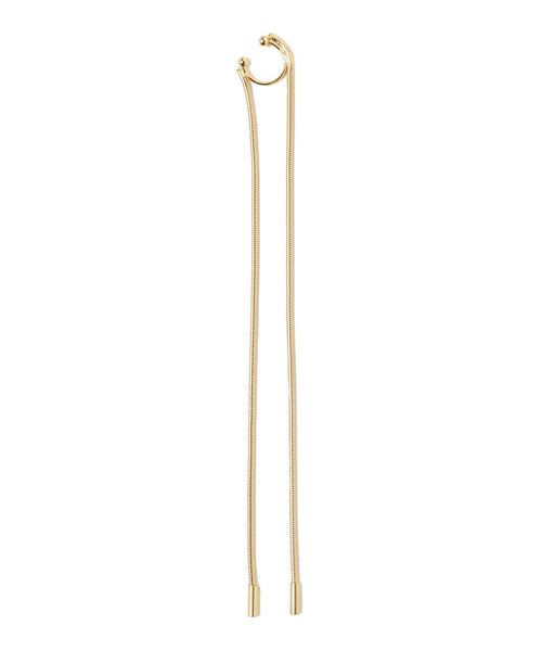 繊細だけど華やかシンプルなスネークチェーンのイヤーカフ。ロングでインパクトのあるデザインながら、しなやかな動きが女性らしさを演出し、取り入れやすいひと品です。お手持ちのアクセサリーとの重ね付けもおすすめです。【アクセサリー・小物雑貨の取り扱いについて】・貴金属は、体質により、かゆみやかぶれを生じる場合があります。・皮膚に異常を感じた場合は直ちにご使用を止め、専門医にご相談下さい。・家事やスポーツ、就寝時や乳幼児の世話をする時などは、身体に危害を及ぼす場合がありますので着用を避けて下さい。・熱伝導が高いので、高温の場所や寒冷地での着用は火傷や凍傷の原因となりますので着用を避けて下さい。・乳幼児が誤飲しないように、保管は十分にご注意下さい。FUMIE=TANAKA/フミエ タナカ2020年春夏よりデザイナー田中文江による"THE Dallas"を改名し、新ブランド"FUMIE=TANAKA"を開始。デザイナー田中の世界観をフィルターを通し、解放された自然体で自分の思う感性を表現しています。自分を知り自然体に居心地を感じる大人に向けたブランドであり、革小物や遊び心がある異業種とのコラボレーションも特徴の1つです。