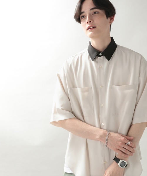 ーーー大好評のラグイージーシリーズラグジュアリーで上品なのに、お手入れ簡単イージーケア。さり気ない襟の配色デザインが大人気のクレリックシャツが登場しました!■シルエット程よくリラックス感のあるレギュラーシルエットなので、様々なコーディネートと相性抜群です。ボタンを留めて一枚着としてはもちろん、羽織としても使える万能アイテムです。■素材程良い光沢とトロっとした落ち感が特徴的なポリエステル素材を使用。肌触りが良くストレスフリーな仕上がりに。ポリウレタンを混紡しているので、ストレッチ性のある生地がノンストレスな着心地を実現しました。■ディテールボディカラーに合わせた襟の配色がさり気ないアクセントカラーに。両胸に付けられたパッチポケットは実用性はもちろん、デザイン性としても〇上品な印象に仕上がる白ボタンを採用。裾はラウンドカットなので、トレンドのタックインスタイルにもオススメです。ーーー程良く光沢感があり、上品な印象に仕上がっているのでクリーンスタイルにオススメの一着です。羽織りとしてはもちろん、この夏はタックインスタイルの一枚着でも◎