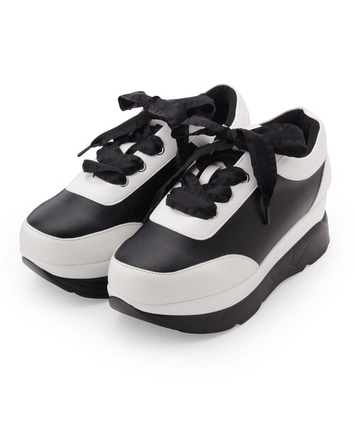 スポーティー×きれいめを組み合わせたダッドスニーカー。 靴底が厚く幅が広いボリューム感のあるデザインです。 つやっとした紐にすることで女性らしさをプラスしました。 靴紐にさりげないフリル状のリボンを使用しバイカラースニーカーにcsT&Pらしい可愛らしさをプラスしています。 ※画像と柄の位置が異なる場合がございます、ご了承下さい。 ※配送時の状況により、箱が破損している場合がございますので予めご了承下さい。 店舗へのお問い合わせ商品番号:P08-04007 ●製品寸法: S(22.0cm-22.5cm):対応サイズ22.0~22.5cm ヒール高5.8cm 幅8.5cm プラットフォーム3.5cm 重量片足約280g M(23.0cm-23.5cm):対応サイズ23.0~23.5cm ヒール高5.8cm 幅8.7cm プラットフォーム3.5cm 重量片足約290g L(24.0cm-24.5cm):対応サイズ24.0~24.5cm ヒール高5.8cm 幅9.1cm プラットフォーム3.5cm 重量片足約300g LL(24.5cm-25.0cm):対応サイズ24.5~25.0cm ヒール高5.8cm 幅9.3cm プラットフォーム3.5cm 重量片足約315g 備考: