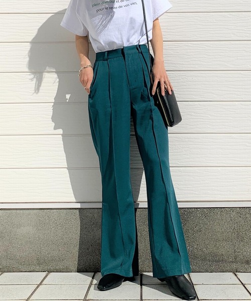 【WEB限定】履くだけでアクセントになる、シーズンライクなフレアパンツです。裾フレアになっていって、センターピンタックで脚長効果も期待できます。オーバーサイズのトップスや、コンパクトなTシャツなど様々なアイテムと合わせやすいアイテムです。《インフォメーション》◆商品のお気に入り登録完売していても再入荷時に再入荷通知を受け取ることができますので、是非ご登録ください。◆ブランドのお気に入り登録新商品や再入荷などの情報を受け取ることができますので、是非ご登録ください。
