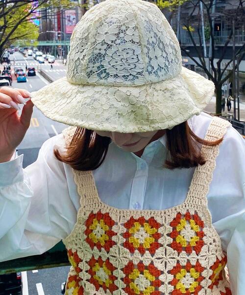 カジュアルなメトロハットを花柄の総レースで仕上げてフェミニンな雰囲気に。清涼感のある軽やかな被り心地でこれからの季節にもぴったりです。幅広のつばで日よけにもおすすめ。裏地付きなので髪が透けすぎず、すっきり収まります。裏側にはワンタッチでサイズ調整が可能なテープリボン付き。ベーシックで使いやすいカラーが揃っています。