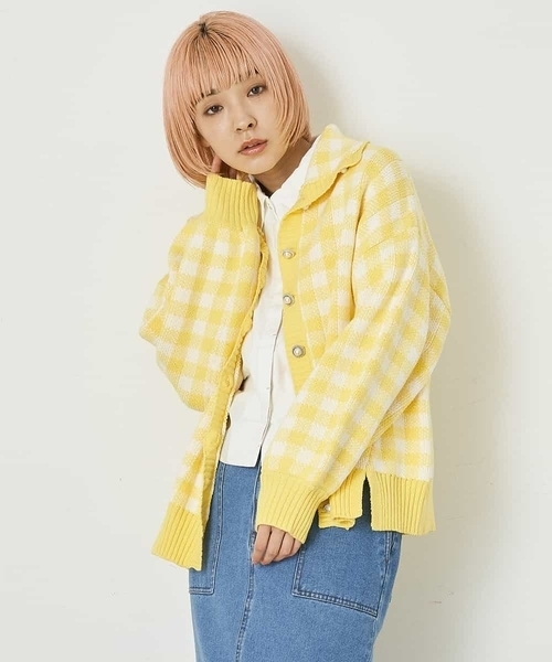 【デザインポイント】ギンガム柄のジャガードニット。袖にボリュームがあり、タイト過ぎず程よい膨らみがシルエットをよりよく見せてくれます。前立て、袖、裾は無地のリブ編みで、柄とのバランスにもこだわったデザインです。パール調のボタンを使用し、高見え効果◎【スタイリング】一枚で、存在感ばっちりのトップスなので合わせていただくボトムはシンプルな色味のもので合わせていただくと、まとまりのあるスタイリングに仕上がります。