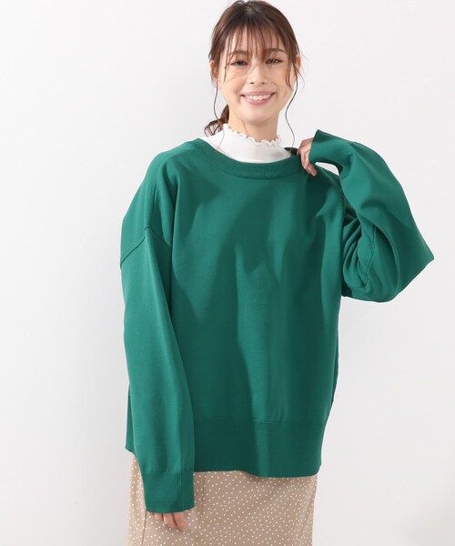 【デザイン】 前後2wayで着回し力の高いニットです。 ハリ感のあるシルエットで高見えする一枚です。 ボタンを前にするとベーシックなカーディガンの形で羽織りでも使って頂けます。 バックスタイルにボタンデザインを持って行っても、可愛いです! 前後2wayで着用できるのでカーディガンとしてはもちろん、トップスとしても◎。 【生地感】 地厚でハリのあるタッチが特徴の素材です。 ※オフホワイト(003)はやや透け感があるため、インナーの着用をおすすめします。 モデル情報:身長168cm B78 W58 H84 着用サイズ:02(M) 店舗へのお問い合わせ商品番号:741-14020 ●製品寸法: 02(M):着丈61cm B130cm 袖丈51cm 肩幅60cm 03(L):着丈64cm B134cm 袖丈52cm 肩幅62cm 04(LL):着丈67cm B138cm 袖丈53cm 肩幅63cm 備考:
