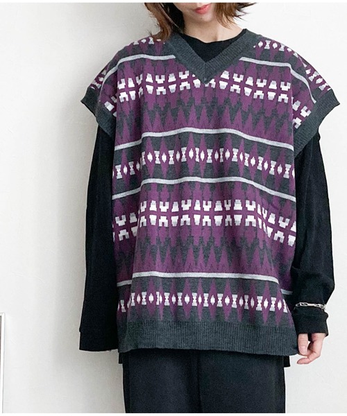 《デザイン》 人気の幾何学柄のビッグベストが登場! 程よい厚みとハリのある12Gのアクリル生地を取り入れ、バランスの取れた立体感を表現。 こなれたルーズ感とナチュラルさを表現できるシルエットに。 ワイドシルエットながら計算し尽くされたスタイリッシュなデザインにも注目です。 カラーバリエーションもベーシックに着こなしやすい定番カラーが特徴。 《素材特性》 さらりとした滑らかな肌触りの生地を使用。 12Gのアクリル素材のため、チクチクせず程よい厚みの生地を仕様している為、これからの時期にお使い頂けるアイテムです。 《スタイリング》 TシャツやロンT、シャツ合わせは勿論、 ロングコートやジャケットなどとも相性抜群! ワイドパンツやデニムパンツ、スキニーやシェフパンツなど様々なスタイルにマッチします。 ※男女問わずユニセックスでお使い頂けるので、ご自身用は勿論、プレゼントにもオススメです。 ----------------------------- 透 け 感 : なし 伸 縮 性 : あり 裏 地 : なし 光 沢 : なし ポケット : なし 厚 さ : 普通 柔らかさ : 普通 ----------------------------- ※ご覧のモニター環境により、画像の色味と多少異なる場合がございます。 【Anytime Songs】 世界から発信されるトレンドを独自に取り入れ、国内外のブランドをセレクトしたショップ。 いつも新鮮で多様性を楽しめるリアルクローズを提案します。 ≪お気に入り登録してAnytime Songsの最新情報を手に入れられます≫ 【商品のお気に入り登録】 お気に入りアイテムの在庫ラスト1点、再入荷、セールなど商品情報をお届け 【ショップ・ブランドのお気に入り登録】 新商品の最新情報をお届け 今期人気アイテム、メッシュキャップ テックパンツ イージーパンツ ミニバッグ バニティバッグ スニーカーサンダル オーバーシャツとの相性抜群。