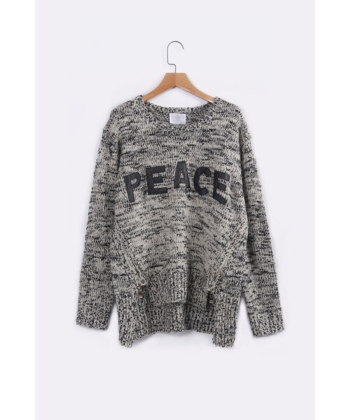 此款為正常版型黑灰白相間的混仿毛料,上面拼接黑色PEACE字母刺繡,袖口、前短後長的下擺皆有縮口設計,穿起來較有朝氣。靠近?邊的兩側開衩,拉長腿部視覺比例。搭配黑色內搭褲或皮褲就能呈現帥氣有個性的穿搭。