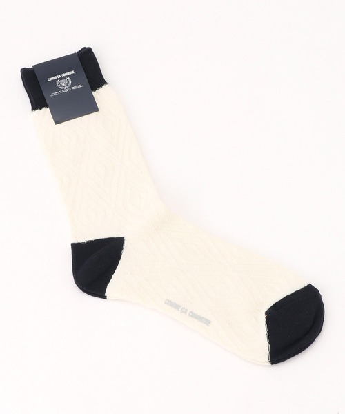 大・中・小の、ダイヤ柄を組み合わせたソックスです。額縁のラインを凸で表現。一見無地見えですが、奥行きのある表情があります。使いやすいオフホワイト、グリーン、ネイビーの3色展開です。※画像の商品はサンプルとなりますので実際の商品と仕様、加工、サイズが若干異なる場合がございます。※こちらの商品はFIVE FOXes独自の採寸方法となっています。本サイトのサイズガイドと採寸方法が異なる場合がありますのでご了承ください。