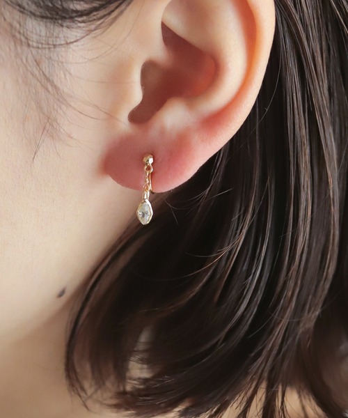 【rapiécage ラピエサージュ】 ■マーキスフレームストーンイヤリング マーキス型のフレームに、きらきらと輝くストーンをはめたモチーフ。動くと揺れる小ぶりのモチーフで女性らしいデザイン。 ゴールドフレームには透明感のあるクリアなストーン。 シルバーはマットにし、トレンドでもあるパープルと組み合わせて新鮮なカラーコンビに。クールな表情が魅力です。 普段使いに取り入れやすいサイズ感。 カジュアルな着こなしのクラスアップに。またオケージョンシーンや、通勤でも重宝します。 ※商品はrapiécageオリジナルBOXに入れてのお届けになります。 ※イヤリングパーツは、ピアス見えする耳たぶにはめ込むタイプ。 痛みもなく安心です。ゆるい場合は、はめた後に優しく押さえて調整してください。