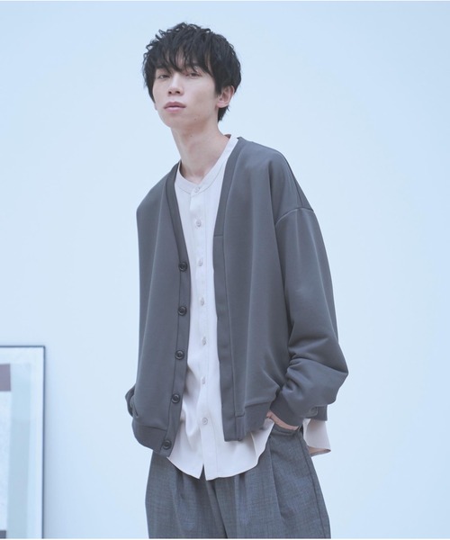 【ドレープスウェットカーディガン】《素材特性》ポリエステルの柔らかでふんわりとして程よく厚みのあるスウェット素材を使用裏毛素材の使用で軽い羽織りとしては適切な素材感です。ポリエステル素材なのでイージーケア洗濯等もガシガシしていただけます。《シルエット》新鮮味のあるショートカーディガンの仕様アーム 身幅にはゆとりを持たせ、リラックス感のあるシルエットに。《デザインディテール》 ボタンは比翼の使用にし、リブは同色仕様で全体的にミニマムなデザイン。シルエットと素材感で差別化をし、neez.ならではのアイテムに。存在感のあるシルエットとカラーバランスが秀逸。すっきりと見えるVネックデザインもポイントで、汎用性の高い洗練されたデザインに仕上げたアイテムです。【推奨サイズ】Sサイズ:~168cmMサイズ:169cm~175cmLサイズ:176cm~