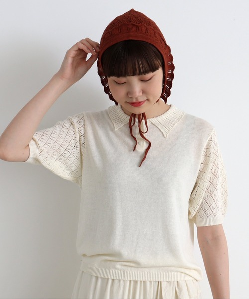 夏も快適な着心地 すかし柄のニットシリーズ。 麻の糸を使用したので、通気性もよく、麻特有の風合いがあります。 今回のテーマである「トゥレットゥ・シュル・ルー」の 民族衣装の帽子をイメージしてニット頭巾を作りました。 お洋服と色を合わせて取り入れるのがおすすめです。 chambre de charme 2022.summer 季節が変わり、夏が来た フランスの花の村をめぐる旅 たどり着いた先は「スミレの村」として知られている村で スミレのお菓子やスミレの香りがついた紅茶 スミレのアイスクリームも見つけた 「トゥレットゥ・シュル・ルー」というコート・ダジュールの小さな村 今日はどんな出会いがあるかな 洗濯:手洗い可 ※着用商品はサンプルになります。 ※サンプル商品は、実際の商品と仕様、加工、サイズが若干異なる場合がございます。 ※撮影画像は、光の当たり具合やモニターの環境により色味が違って見える場合があります。 あらかじめご了承ください。