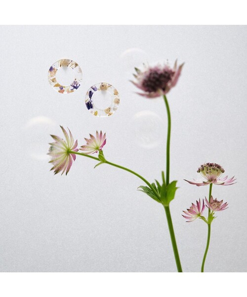 【ANEVER(アンエバー)】MINI RING PIERCE ■デザイン リングをモチーフにしたフラットカットパーツの小さなピアス。小振りでかわいいピアスです。ちょっとしたプレゼントにもおすすめ。 ■素材 ドライフラワーを封入したアクリルシートから切り出して、丁寧に磨き上げ作成したオリジナルパーツです。 ※素材の特性上、同じ商品の中でも表現が異なります。1つ1つ異なった表情をお楽しみください。 ※画像はサンプルを使用しているため、実際にお届けする商品と仕様やサイズが異なる場合がございます。 ※画像の商品はサンプルです。実際の商品と色味、仕様、加工、サイズ、素材等が若干異なる場合がございます。 ※照明の関係により、実際よりもやや明るく見える場合がございます。またパソコンなどの環境により、若干製品と画像のカラーが異なる場合もございます。予めご了承くださいませ。