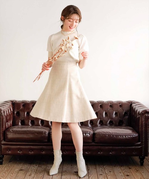 【ハイクオリティな日本製の作りが生み出す品の良さが、大人も着れるミニ丈フレアスカート】【Point】・日本製の生地と日本の縫製にこだわって丁寧に作られた、本物志向のハイクオリティアイテム。・着丈60cmが短すぎず、品良く大人が着れる、トレンドのミニ丈スカート。・同系色でまとめたチェックが、知的で落ち着いた印象に仕立てる、オフィスにもおすすめのスカートです。【Design/Styling】6枚剥ぎで作られた計算されたシルエットが、女性が気になりやすい骨盤まわりをすっきり見せてくれるフレアスカート。トレンドのミニ丈を大人も品良く着こなせるよう、ハイクオリティにこだわって作られた日本製のスカートです。オフィスにも馴染む、落ち着いた印象のスラブチェックがオンオフ兼用おすすめのアイテムです。【Fabric】履いた瞬間に立体的な綺麗なシルエットを作り出す、ほど良いハリ感のある生地を使用しております。知的な印象の落ち着いたスラブチェックが、大人な気品漂う着こなしに仕立ててくれます。ウエストは後ろにゴムを入れているので、長時間の着用も安心して着ていただけます。ケア方法→ウェットクリーニングが可能です。???????透け感:なし裏地:あり伸縮性:なし(ウエスト部分:後ろゴムあり)光沢感:なし生地の厚さ:中肉S:(01):着丈 60cm/ウエスト 62cm/ヒップ 96cmM:(02):着丈 63cm/ウエスト 65cm/ヒップ 99cm