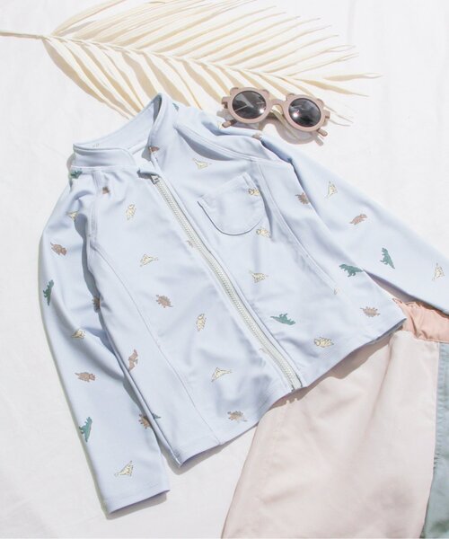 【apres swim wear】アプレらしいやさしい色合いのラッシュガード☆ サックスの恐竜柄は同じ柄のボクサー水着もあるので同じ柄で合わせてもかわいいですよ♪嬉しいUVカット加工つき♪