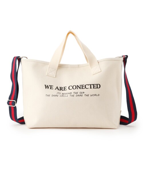 【デザインポイント】ライン入りのショルダーがアクセントになったシンプルなキャンバスBAG。ランチトートより一回りサイズの大きいミドルサイズです。A4サイズが横方向に入ります。帆布の裏側にPVCを張り合わせているため、ハリがありフォルムを保ちます。口には1か所マグネット付き。ショルダーは取り外し可能です。フロントには「we are connected its beyond the sea.thesame circlethe same the world.」「私たちは海を越えて繋がっている。この同じ輪の中で、同じ世界の中で」というメッセージをプリントしています。【スタイリングポイント】大人カジュアルなスタイリングにプラスするのがおすすめ。トーナルカラーのスタイリングに組み込むことでカジュアルさの中にシックさが出ます。ショルダーのライン使いがスタイリングのアクセントになって◎店舗へのお問い合わせ商品番号:127-04117●製品寸法:00(FREE):高さ24.5cm 幅(上部)38cm 幅(上部)31cm マチ11.5cm 持ち手上がり11cm 付属ショルダー対応サイズ61.5~116cm備考:重量:約375g(サンプル重量)