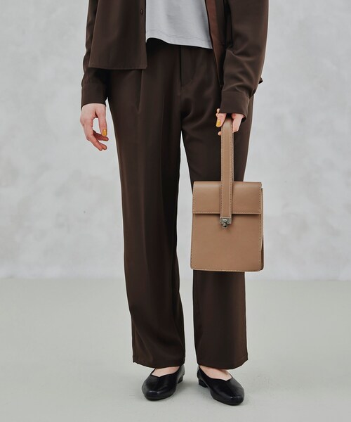 【素材】本体はマットな質感のレザー調素材で上品感のある見た目になっています。収納部分にはポリエステルを採用。荷物を入れる部分は引っかかりがないようにサラッとしたポリエステルになっています。【デザイン】ミニマルで無駄のないシンプルなハンドルバッグ。フラップを留める金具がクラシカルでどこかヴィンテージ感もあるデザインで上品な雰囲気を演出してくれます。※ポケット数:外側×2 内側×2【スタイリング】シャツや、スラックスなどのキレイ目なスタイリングに相性が◎です。上品でスタイリングに落とし込むだけで洗練されたコーディネートになります。- BRAND CONCEPT -時代を超えて支持されるトラディショナルなアイテムをベースに、アソビ心とストリートの自由な発想を取り入れ、日本独自のミックススタイルを提案します。店舗へのお問い合わせ商品番号:P97-04393●製品寸法:00:高さ22.5cm 幅(上部)17cm 幅(下部)18cm マチ4cm 持ち手上がり16cm備考:重量:約340g(サンプル重量)