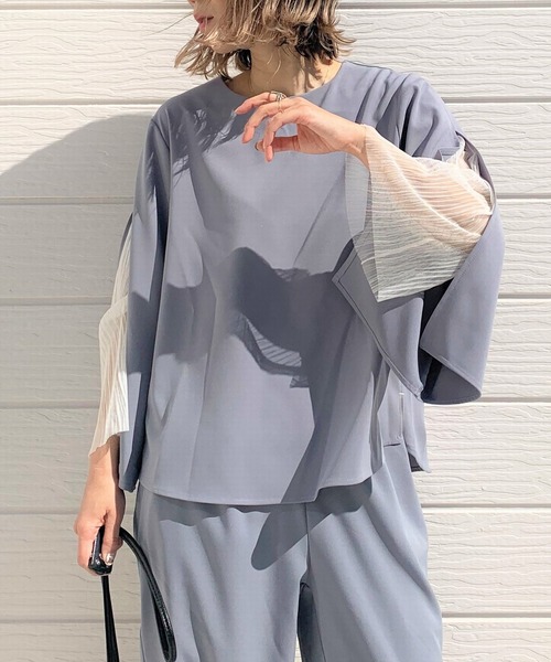 【セットアップ対応】 エレガントな雰囲気が漂う、フレアスリーブブラウスです。 袖のスリットから覗くレースが上品な中にもかわいらしさを演出してくれます。 オールシーズン着用可能な素材感と、しわになりにくいのも◎ ボディは少し厚みのあるブラウスで透け感もなく安心してご着用いただけます。 同素材のパンツ(ZOZO問い合わせ番号:63516337)とセットアップでセレモニーでも着用や、デニムなどカジュアルボトムとのコーディネートもお楽しみください。 《インフォメーション》 ◆商品のお気に入り登録 完売していても再入荷時に再入荷通知を受け取ることができますので、是非ご登録ください。 ◆ブランドのお気に入り登録 新商品や再入荷などの情報を受け取ることができますので、是非ご登録ください。