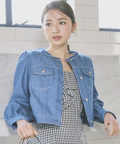 季節の変わり目の万能アイテムGジャン♪【Design】・これからのシーズンに大活躍してくれるライトアウターのGジャン。・シンプルなノーカラーデザインがさりげなく抜け感をプラス。・短丈なのでハイウエストのデザインのボトムや、フェミニンなワンピースとの相性も抜群◎。・肩幅を少しコンパクトにすることで、さりげなく華奢見せ効果も期待できます。・肩回りをほんのりパフスリーブにすることで気になる二の腕部分の着ぶくれせずお召しいただけます。・袖口をロールアップしたラフなスタイリングもオススメです。【Fabric】・季節を問わず使いやすい、薄すぎず厚くない素材感。・定番のライトブルーと深めのインディゴの2色展開となります。【Care】ドライクリーニングM:(02):着丈38cm/バスト91㎝/肩巾33.5cm/袖丈54cm/ウエスト82cm/裾回り83.6㎝