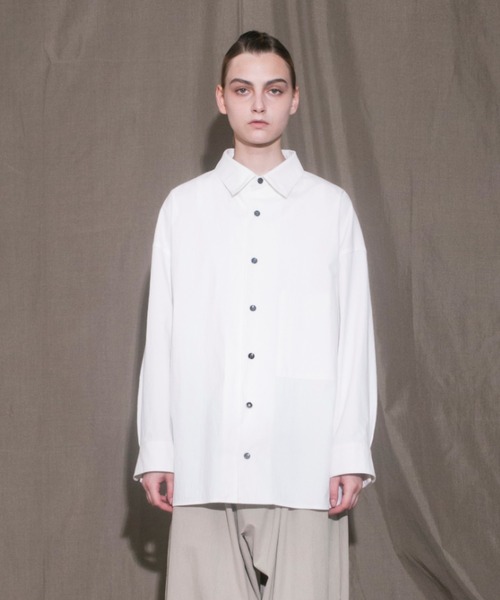 my beautiful landlet 自身が愛着のある物をその時代に落とし込み、共に共有したいとの思い。 シーズン毎にコンセプトは設けず、ブランドとしてのカラー・シルエット・素材選びを大切にしています。 I would like to bring an attached article to this period of era and share them. It is important for me to choose a brand's color, form and material without a seasonal concept. ------------------------------------------------------ バイオ加工を施し、表面を微起毛させることでソフトな風合いに仕上げたコットン×ナイロン生地を使用したシャツ。 ゆったりとしたオーバーサイズシルエット。 ベーシックなシャツをベースにしたデザインなので、幅広いスタイリングに合わせやすくデイリーに活躍してくれるアイテムです。 メンズ、レディースともにユニセックスで着ていただけます。