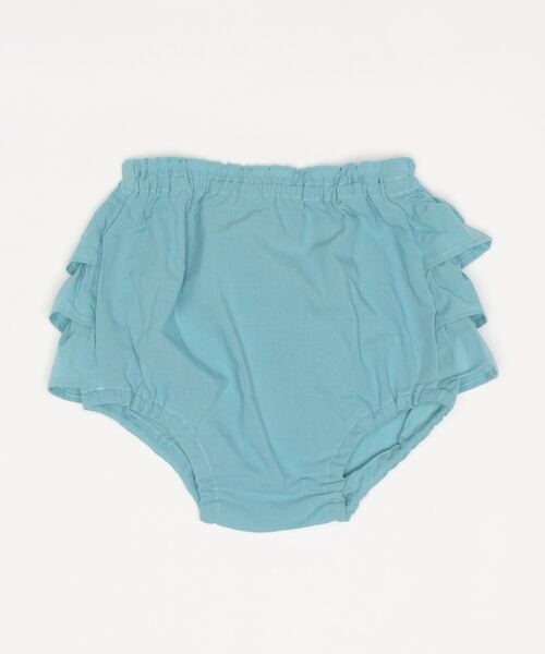 大人気のフリルパンツ♪完璧にかわいいシルエット!横から見たらアヒルさんのおしり、後ろから見るとミニスカート!夏はこれ一枚でいいですし、まだ肌寒ければ、スパッツの上に履いて下さい。70cm~90cmのフリーサイズですので2~3年は履けちゃいます。ゴムも取り替えられます。