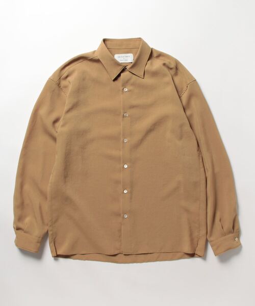 夏まで主役のリネンのようなやわらかな風合いリラックス感のある程よいゆとりで着るシーンを選ばない万能シャツ 【機能性】洗濯可・防シワ・速乾 ◆素材 さらりとした麻調に寄せた素材を使用したシャツ。 風合いは麻ですが、ポリエステル素材なのでシワにもなりづらく、吸水速乾性もあるので乾きやすく、お手入れの必要もない素材です。 縦横に強撚のポリエステル糸を使用し、麻のようなシャリ感のあるドライタッチと表情豊かな表面感が特徴です。 ◆デザイン ゆったりとしたサイズ感でウエストの絞りのないボックス型の少し短めの丈感。 サイドにはスリットが入りアクセントとして軽やかな印象に。 ヘムライン(裾線)もフラットににし堅実な印象になります。 普段でもビジネスでも使用できるデザイン。シンプルですが、こなれ感を出した毎シーズン大人気な定番シャツです。 -------------------------------------------- 透け感/ややあり 光沢感/なし 伸縮性/ややあり 裏 地/なし 厚 み/薄手 お手入れ方法/手洗い可能 --------------------------------------------