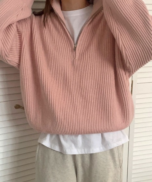 2022 New item 『トレンドのハーフジップニット』 〇Design 〈IVORY・NAVY・BLUE・PINKの4色展開〉 ・今季マストハブアイテムの「ハーフジップ」 ・定番のアイボリー、ネイビーに加えて、コーデの差し色となるブルー、ピンクをご用意。 ・ジップの開閉次第で幅広い着こなしが楽しめる優秀アイテム。 ・ファスナーを開けてビック襟のように、閉めると防寒対策もできるハイネック仕様に。 ・ゆるっとしたルーズなシルエットが今年らしい雰囲気を演出。 ・アクリル×コットン素材でチクチクしないので、ストレスフリーに着用できます。 〇Styling 1枚で着るのはもちろん、インナーにタートルネックやシアートップス、ロンTなどの 薄手カットソーをインしたレイヤードスタイルでコーディネートの幅が広がります。 タックイン、タックアウトどちらでも合わせやすい長すぎないミドル丈なので、 スカートやパンツ問わず着こなせるのも魅力の一つ。 デニムやスキニー、ワイドパンツで大人カジュアルに、 スラックス×ヒールシューズでキレイめの装いに仕上がります。 ハーフパンツ×ロングブーツでトレンドライクな着こなしにもおすすめです。 スカート合わせでは、タイトスカートやマーメイドスカートはもちろん、 プリーツスカートでアクセントを効かせたスタイルも。 足元はスニーカーでラフに、ブーツやローファーとも相性が良く、 幅広いアイテムと合わせやすい1着となっています。 韓国ファッションが好きな方は是非。 こちらの商品はセレクト・インポートアイテムのためサイズ感が日本規格のものとは異なります。 お買い上げの際にはサイズチャートでご確認頂きますようお願いいたします。 【お買い物をよりお楽しみいただくために】 ●商品のお気に入り登録(ハートマークをクリック) 完売カラーの再入荷や、ラスト1点のお知らせ、セール情報などの通知を受け取ることができます。 ●ブランドのお気に入り登録 新商品や再入荷など、お得な情報をいち早く受け取ることができます。 ●最短で翌日お届け 商品をカートに入れた後、注文内容の確認ページで「即日配送」を選択していただければ、最短でご注文した翌日にお届け致します。 是非ご利用頂き、お買い物をお楽しみください。