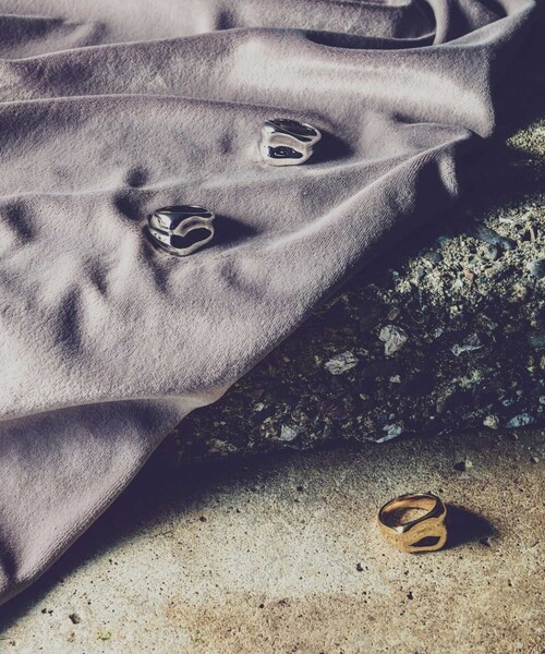 "ラスト リング" 濡れたようなつやめきをまとった、ボリューム感のあるリング。 粘土で造形したようなやわらかな凹凸や、手づくりのようなニュアンスのあるフォルム。 ボリュームがありながらも、指になじみやすい仕上がりに。 1本ではもちろん、パールや華奢めのアイテムとも好相性のデザイン。 チェーンリングとの合わせもおすすめです。 サイズ直し:不可 ※サイト上のサイズ名と、お届け商品に記載されているサイズ名が異なる場合がございます。
