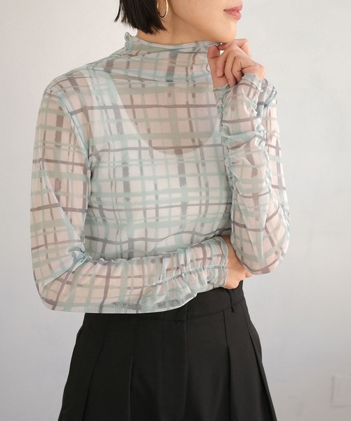 肌馴染みの良いしなやかな質感のシアートップス。 ストレッチ性のある柔らかいパワーネット生地を使用したシアートップス。水彩のチェック柄で華やかなコーデに仕上げてくれます。透け感があるのでレイヤードスタイルにおすすめ。ネック、袖、裾がメロウになっているので可愛らしさもプラスしてくれます。身体のラインを拾いすぎない程良くピッタリしたシルエットで様々なコーデに活躍すること間違いなしの1枚です。 ■コーディネートアイテム パンツ… bf09x04987 サロペット… bo80c04809 ■商品仕様 パワーネット生地 裏地…なし 伸縮性…あり 透け…あり ポケット…なし 付属品…なし 着脱…プルオーバー ※繊細な生地ですのでお洗濯などのお取り扱いには十分ご注意ください。詳しくは下げ札をご覧ください。 ※着用の際、摩擦や発汗により衣類やバッグ等に色移りの恐れ(特に淡色系のもの)がありますので、十分ご注意下さい。 ※透けますのでインナーの着用を推奨します。 ※サイト上のカラー名と、お届け商品に記載されているカラー名が異なる場合がございます。 ライム=ピスタチオ 【ご購入前に必ずご一読下さい】 ※モニタ環境によって、商品の色合いが多少異なる場合がございます。 ※色落ちの恐れがありますので、他のものと分けてお洗濯して下さい。 ※商品をお安く提供させて頂く為、検品後のアイロン掛けは省略させて頂いています。 発送時も簡易梱包の為、お受け取り時にたたみ皺があると思いますがご了承下さい。