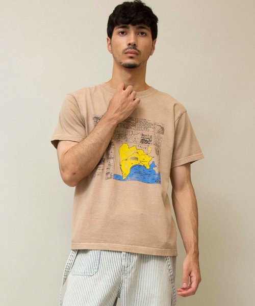 ご好評頂いている【GOOD ROCK SPEED】とのコラボTシャツ。ピグメントオーバーダイ加工を施し、ユーズド感のある風合いに仕上げたTシャツを使用しています。独特の陰影や色褪せたような雰囲気が魅力のアイテムです。今回は南フランスにあるリゾート地の架空の案内図をモチーフに、色鮮やかなプリントをフロントに。同じ生地で異なるプリントのアイテム(25959)もございます。■ポイント・ユーズド感のあるピグメントオーバーダイ加工・一枚でも映えるフロントプリント・ベーシックに着用できるシルエット■シルエットベーシックで合わせるアイテムを選ばないリラックスフィットシルエット。程よいゆとりがあるプレーンなシルエットのため、一枚でも綺麗に着こなして頂けます。■生地感…………………… 透け感:なし厚さ:普通伸縮性:なし裏地:なしポケット:なし洗濯:手洗い可※デリケートな素材なので着用時は引っかけ、擦れにご注意ください。※製品の特性上、お洗濯により色落ち、色移りする場合がございます。お洗濯を繰り返すうちに色落ちはおさまりますが、他の物と一緒に洗わないでください。…………………… ■スタイリング色鮮やかなフロントプリントがポイントのアイテムです。シンプルなジャケットやシャツと合わせて、スタイリングのアクセントにして頂くのもおすすめです。ベーシックなシルエットですので、オーセンティックなデザインのデニム等と合わせた王道のカジュアルスタイルとも好相性です。