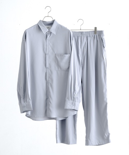 【 リラックスベーシックオーバー シャツセットアップ / RELUX BASIC OVER SHIRT SETUP 】 単体でも活躍すること間違いなし!melt.初となるセットアップ企画 リラックスシルエットで着るだけで様になる春のマストアイテム [素材] ポリエステル素材 サラっとした肌触りで高密度な素材を使用している為、 清涼感と高級感のある生地感です。 ポリエステル特有のドレープがあり、袖先や裾にかけての落ち感を楽しめます。 シワになりにくく、イージーケアで長いシーズンで着用することが出来ます。 生地感は厚過ぎず、気温が高くなったタイミングでも着用しやすい様、 透け感の出ない様な高密度で肉感の薄い生地を採用しております。 [デザイン] オーバーサイズのレギュラーカラーシャツと、 タック入りのイージースラックスの組み合わせによって トレンド感の強いアイテムとなっております。 生地に張り感が有るため型崩れがしにくく、 襟元などはキレイなシルエットを保ってくれます。 パンツにはセンタープレスを入れることで、 綺麗めな印象を与えてくれます。 セットアップながらもリラックスシルエットのため、 堅っ苦しくなく、ラフにコーディネートが完成致します。 セットでの活用は勿論のこと、単体でも様々なアイテムとの組み合わせが楽しめます。 ボトムスは紐が付いているため、ベルトレスで着用することができ、 インナー等をタックインする際はベルトループも付属されているため、 ベルトを付けても履くことが出来ます。 これからの季節に幅広く活躍するアイテムとして、お楽しみくださいませ。 ※屋外での撮影画像や光の当たり具合で色味が異なって見える場合がございます。 商品の色味はスタジオでの詳細画像をご参照下さい。 [ melt. ] brand concept 『自身に溶け込む服』 自身に溶け込み、自分らしさを引き出すitemを提案 類を見ない新しいデザインながらも 着回しに重点を置き、幅広いスタイルで自分らしさを表現 ▼商品のお気に入り登録 完売カラーの再入荷通知や、ラスト1点、セールの通知をお知らせ致します。 ▼ブランドのお気に入り登録 新商品や再入荷など、いち早くブランドの情報を受け取ることができます。 是非ご利用頂き、お買い物をお楽しみ下さい。