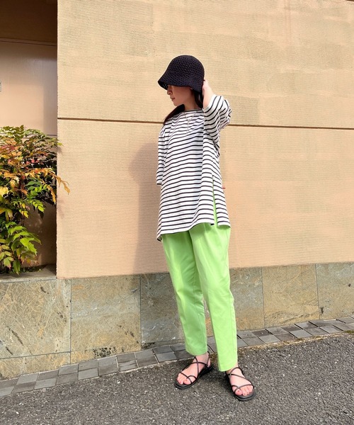 トレンドに左右されないベーシックなデザイン●detailウエストタックの美しい縦落ちシルエットが魅了的な一枚。ベーシックなデザインで何本持っていても困らないデイリー使いに最適なアイテム。定番カラーのアイボリーに加えて、爽やかな印象を与えてくれるサワーグリーンの2色展開。もたつかず程よいルーズ感でラフな着こなしが叶います。大人カジュアルに決まる様々なシーンで活躍してくれること間違いなしのアイテムです。●fabric丈夫で程よい肉厚感の柔らかな肌触りのコットン100%。ウエスト後ろ部分がゴム使用になっている為ストレスフリーに着用可能。●coordinateフリルのあるブラウスなど女性らしいトップスを合わせることでバランスの取れたコーデが完成。キャミやタンクをインしてオーバーサイズのシャツを羽織るのがオススメ。足元はスニーカーからサンダル、パンプスまで様々なアイテムと相性抜群です。ブランド品番:S1879
