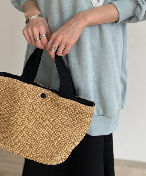 シーズンムード高まるミニかごトートラフィアを使用した涼しげなミニかごバッグ。通勤・通学にランチボックスを入れたり、ちょっとしたお出かけにも◎丁度いいサイズ感でラフに持ち歩けるミニトートです。