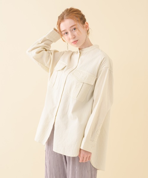 一枚でも、羽織としてもおすすめなサファリシャツ。二重織ならではの、“地厚だけど柔らかい”生地が優し気な印象です。ラウンドヘムにする事で相性の良いボトムスも多く、デニムやテーパードはもちろん、タイトスカートとも。