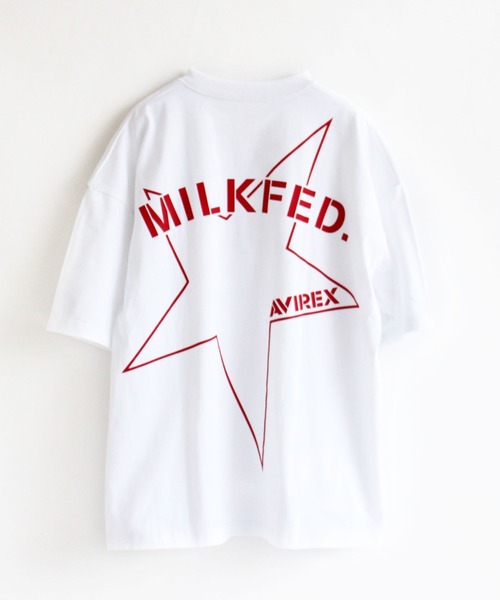 MILKFED.×AVIREX コラボアイテム第二弾発売!! 背中のスターがインパクト大なTシャツ☆ ゆったりとしたボディに、インパクトのある星のモチーフを背中にあしらったトップス。 MILKFED.のロゴが大きく入り、コラボならではの価値のあるアイテムに仕上がっています。 カラーは合わせやすいホワイトとブラックの2色展開で、どちらも欲しくなってしまう魅力たっぷりのTシャツに仕上がりました☆ 【MILKFED.】 「エレガント」「カジュアル」をコンセプトに日常で見慣れたベーシックアイテムにガーリーな味付けをしたワードローブ。 流行をリアルなスタイリングに落とし込み、シンプルな中にオーラが漂うエイジレスな女性のカジュアルスタイルを提案します。 【AVIREX/ アヴィレックス】 いくつものフライトジャケットをコントラクターとして納入してきた。 AVIREXは高い機能性を持つフライトジャケットの魅力を一般市場にも広めるため、その要素を随所に取り入れたサープラスウェアも創り出している。 その無駄の無いデザイン、ノスタルジックな味わいは世界中の多くの人々から支持され続けている。 大空に思いをはせた飛行家(アヴィエーター)を称えるAVIREX(空の王様)から生まれた名である。 ■お使いのパソコンのモニターによって、実物商品とカラーが異なって 見える場合があります。誠に申し訳ございませんが、ご理解下さいます様お願いいたします。 ■当ショップの在庫数は 直営店舗の商品も含まれています。在庫数が日々変動する為、ご注文頂いた時点で在庫が完売になっている場合がございます。 ■サイズ表は、製品の生地や織りなどの特性により、多少の誤差はございます。予めご了承ください。 --------------------------------------------------------------------- 【お買いものをお楽しみいただく為に!】 ▼商品のお気に入り登録 完売カラーの再入荷通知や、ラスト1点の通知、セールの通知も受け取ることができます。 ▼ブランドのお気に入り登録 新商品や再入荷など、いち早くブランドのお得な情報を受け取ることができます。 ---------------------------------------------------------------------