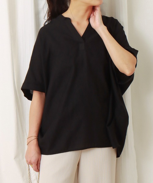 夏に大活躍!涼しげな多機能リネンブラウス。 肌にもやさしく柔らかい素材を使用◎ お洗濯可能な優秀トップスです◎ ■point ・肌離れの良い生地 ・前後のタックデザイン ・吸水速乾 ・UVカット ・抗菌防臭 ・豊富なカラバリ ■detail 機能性抜群のリネンブラウス。 襟もとはバンドカラーになっているので、涼しく女性らしい印象に。 フロントと背中に大きいタックが入っているので、 身体のラインを拾いにくく華奢見え効果が狙えます。 お尻まで隠れる長めの着丈も嬉しいポイント◎ ■fabric 通気性の良いリネンに、レーヨンのなめらかさを合わせた ハイブリット機能性素材で暑い季節も快適に着用頂けます。 …………………… 透け感:ややあり 厚さ:普通 裏 地:なし 光沢感:なし 伸縮性:なし ポケット:なし 洗濯方法:手洗い …………………… ※ネットに入れてのお洗濯をお勧めいたします。 ※詳しいお手入れ方法は商品タグをご参照ください。 ■coordinate ゆったりとしたシルエットを活かして、 テーパードやストレート、フレアなどパンツと合わせると バランスよく着て頂けます◎ 少し抜き襟をして、タイトスカートやマーメイドスカートに INしたスタイルも女性らしくておすすめです◎ 《商品のお気に入り登録》 ・再入荷通知や、ラスト1点の通知、セール通知も受け取ることができます。 《ブランドのお気に入り登録》 ・新商品や再入荷など、お得な情報を受け取ることができます。 ※屋外の光や照明の当たり具合、パソコンなどの閲覧環境によって 実際の色味と異なって見える場合がございます。 予めご了承ください。 ※他のキャンペーンにより、期間中に価格が変動する場合があります。