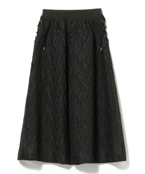 装いをレディライクに仕上げる ロマンティックなムード漂うギャザーフレアースカート。イタリアのコモ地方にて織られたオーガンジー素材。分量感がありながらも軽やかで上品なテキスタイル。エンボス加工が施された繊細なボタニカル柄が程良い透け感です。両脇の編み上げのディテールがフィット&フレアのデザインを演出。カジュアル、モードにも着こなせる日常に華やぎを添えるひと品です。 ●同素材のワンピースもございます 品番:64-26-2552-476 LOKITHO / ロキト デザイナーは木村昌彦。コンセプト:「精神的に成熟した女性のための洋服」日本の技術を駆使した、エレガントなコレクションを目指す。