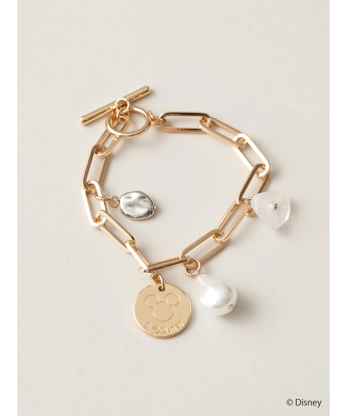 大きめのチェーンに様々なチャームが付いたブレスレット。Goldのプレートに「ミッキー」のシルエットが刻印されているのがポイントです。Disney collection by AMERICAN HOLIC(ディズニー コレクション バイ アメリカンホリック)いつもの暮らしに、Disney がある。日常にわくわくが生まれて、非日常になる。毎日がポジティブに向いて、積極的になれる。新しい場所に行ける、ドキドキすることが起きる。新しい人とも、出会える予感。日々をすこしだけ、カラフルに彩ってくれる。そんな存在になれるように。