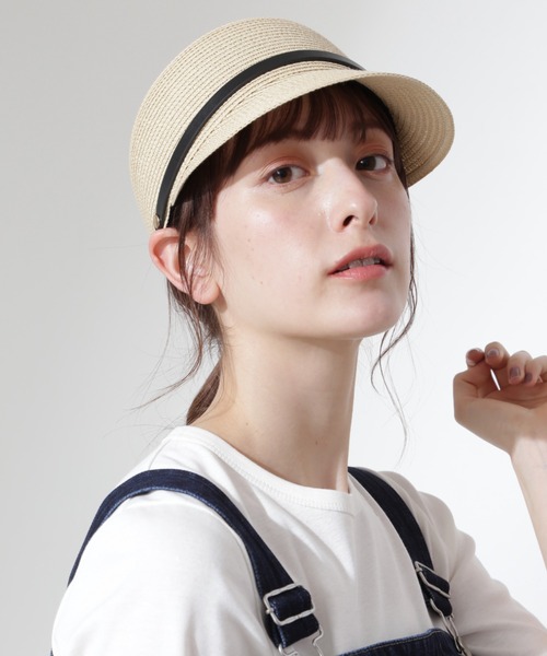 涼しげな印象のツバ付きハット日よけ対策にも日よけ対策にも着こなしのアクセントにもぴったりです。デイリーに使いやすいシンプルな形は、フロントに付いている革テープがアクセントになります。デニムカジュアルにもマキシワンピースなどにも馴じみが良いカラーが魅力。