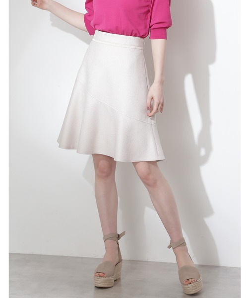 大人の女性が可愛らしく着られるコンパクト丈のフレアスカートバスケット組織にチンツ加工を施すことで、高級感のある光沢をプラスした麻調生地を使用しています。コンパクトな着丈のフレアラインがレッグラインを綺麗に演出します。ウエスト部分のハシゴレースがアクセントとなり、デザインを活かすようにトップスインするのがオススメです。ブラウスやニット、カットソーまで相性よく、大人らしいフェミニンな雰囲気の着こなしが完成します。