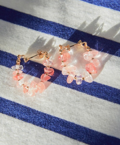 ナチュラルストーン×メタルビーズのコンビネーションがおしゃれなフープデザインのピアスです。 天然石ならではの異なるシェイプやカラーがスタイリングにこなれ感を演出。 コーディネートに取り入れるだけでも爽やかなアクセントに映え、これからのシーズンコーデにもぴったりのアイテムです。 ●AMERICAN HOLIC ● (アメリカンホリック) 大人の女性の毎日を軽やかで豊かにするブランド。 カジュアルなのにオシャレ、コーディネートも楽。ONにもOFFにも等身大で楽しむオトナの日常着をテーマに、スタイリッシュかつ自然体を楽しめるカジュアルスタイルを提案します。 ▼ 商品のお気に入り登録がおすすめです ▼ 商品ページ内のハートマークをクリック。完売時の再入荷や、最後の1点の通知、コーディネート画像がアップされたとき、お得なお値下げの際の通知を受ける事ができます。 【お知らせ】ページでも通知が確認できます。