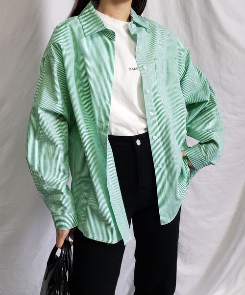 ゆるっとこなれたビッグシルエット。 トレンドの差し色カラーにぴったりの 大人カジュアルなストライプオーバーシャツ。 ■ Point ・トレンド感のあるカラーストライプ柄。 ・デイリーに着回しやすいゆったりとしたビッグシルエット。 ・前後差のある着丈が体型カバーにもぴったり◎ ・アクセントになる丸裾のラウンドヘムデザイン。 ・トップスや羽織り、たすき掛けなどコーデの幅も広がる♡ Detail カラーリングが洒落感のあるビッグシルエット長袖シャツ。 ゆったりとしたドロップショルダーデザインがゆるく羽織れる1枚です。 きちんと感のあるカジュアルコーデを演出します。 ■ Fabric ・やわらかくもほどよいハリ感もあるコットン100%のナチュラルな生地。 ・着疲れしない綿ローンがお気に入り間違いなし! ■ Coordinate ・トップスとしてももちろん、羽織りとしても使える優れモノ。 ・後ろに抜き襟したり袖をロールアップしたスタイルでこなれた雰囲気に◎ ・デニムやカラースラックス、フレアパンツなどと合わせてメンズライクなカジュアルコーデや、ミニスカートやショートパンツに合わせてシャツワンピとしても。 ・スタイルに合わせてロングシーズン重宝するアイテムです。 ■ Color ブルー、グリーン(緑)、ピンク、ブラック(黒)の4色展開からお選びいただけます。 【生地感】 -------------------------- 裏地:なし 透け感:ややあり 生地の伸び:ややあり 光沢感:なし -------------------------- 【me+em select (ミームセレクト) ZOZOTOWN お買い物ガイド】 ▼商品をお気に入り登録▼ 完売商品の再入荷やラスト1点の通知、セール開始時にお知らせ! ▼"me+em select (ミームセレクト) "をお気に入りブランドに登録▼ 新商品や再入荷など、ブランド最新情報をいち早くお知らせ! 是非、ご活用いただきお買い物をお楽しみください◎ ■他のキャンペーンにより、期間中に価格が変動する場合があります。 ■セールは予告なく終了させていただく場合もあります。 ■ご覧のモニター環境や撮影環境により実際の商品と多少色味が異なって見える場合がございます。 ご理解の程よろしくお願いいたします。
