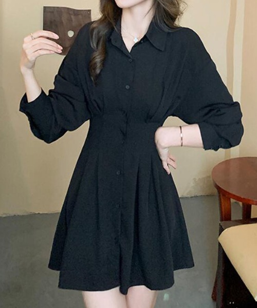 春の大定番!一枚で主役になれるシャツワンピ ■デザイン ウエストマークしたデザインでスタイル良く見せてくれるシャツワンピース 襟ありで首元をすっきり見せ女性らしさを際立たせてくれます。 タックの入ってデザインですっきりと見せてくれます。 ワンピースとしてもトップスとしても着用していただけます。 ■素材 身体馴染みが良くシーズン問わずお召し頂きやすい生地を採用。 ご自宅でのお手入れも楽にして頂けます。 ■スタイリング 一枚で着用しショートブーツを合わせたり、デニムとレイヤードしても◎ 中にハイネックのインナーを重ねてカジュアルにお召いただいても◎ 動きやすくストレスにならない着心地。 春のマストアイテムとして、一着持っているとコーデの幅が広がります。