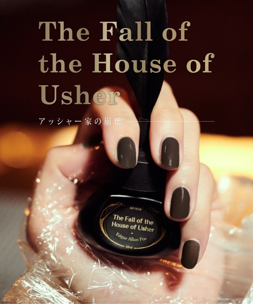 「崩れ落ちるまで、ひび割れから目を逸らし続ける私たちがいた。」 『アッシャー家の崩壊』の、どんよりした沼のうす暗いブラウン。 今でも怖さは色褪せないホラー小説の大家、エドガー・アラン・ポーの作品をジェルポリッシュに。幻想と秘密をそっと指先に、今度は貴方が語り手の「私」になるのです。 主流文学ばかりが注目される中、『禁断シリーズ』の視点で文学を再解釈して、主流と違う観点をお届けする。 まるで禁断の果実のようで、近づくには勇気がいるけれど、一度口にしたら戻れなくなって、やみつくほどに欲しくなってしまう。 光に当ててはいけないジェルポリッシュに真っ黒なボトル、蓋を開けるまでは、中身を知ることができない。 それを自分のものにできるのは、禁断に触れる勇気がある者のみ。 【特長】 ・ポリッシュタイプで塗りやすい ・サンディング不要 ・拭き取り不要 ・ベースコート不要 ・お湯で剥がせる、専用リムーバー不要 【塗り方】 Step.1 適量のジェルポリッシュを取って、爪に薄く塗ります。 Step.2 UV・LEDネイルライトで約60秒照射して、硬化します。 ※照射中に熱く感じる場合は一度指を離して、熱さが落ち着いてから再度照射してください。 Step.3 発色を強める場合は、1と2を繰り返します。 (3度塗りまでがオススメ) 【落とし方】 Step.1 熱すぎない程度のお湯に3分ほど指を浸します。 Step.2 縁から優しく剥がします。 Step.3 オフ後の自爪に白い跡が残る場合があります。キューティクルオイルやファイルでケアしましょう。 【使用上の注意】 ・硬化するにはネイルライトが必要です。 ・完全硬化してから、次のステップへ進んでください。 ・ハンドクリームやキューティクルオイルなどを爪につけたままジェルポリッシュを塗布すると、剥がれやすくなります。 ・塗布量が多いと、中が固まらず表面のみ硬化し、縮みが起こりやすくなります。 ・爪のエッジにも塗っておくと、剥がれにくくなります。 ・作動中のネイルライト近くにブラシやボトルを置いていると、ライトの影響で硬化する恐れがあります。 ※マイナーチェンジによって、ラベル・パッケージデザインは画像のと若干異なる場合もあります。予めご了承ください。 ※天然羽根を使用している為、サイズや形に個体差があります。 ※ご使用のモニター環境によって、色味が違って見える場合があります。 ━…━…━…━…━…━…━…━…━…━…━…━ et seq. / エセク 「et seq.」(エセク)とは英文でよく使われる「以下参照」の略称。 羽根ペンをかたどったブラシ、インク瓶のようなボトル、 数々の名文を書き記した道具を通してアイデンティティを探そう。 過去の文学から「参照」して、色を端書きに変える。 自分の姿を知って、自分の色と共鳴し合おう。 ━…━…━…━…━…━…━…━…━…━…━…━ □お気に入り登録について 完売カラーの再入荷通知やお得な情報を受け取ることができます。 □ブランドのお気に入り登録について ブランドの新商品や再入荷などお得な情報を受け取ることができます。 □ショップのお気に入り登録について ブランドに関わらずショップの新着情報やお得な情報を受け取ることができます。
