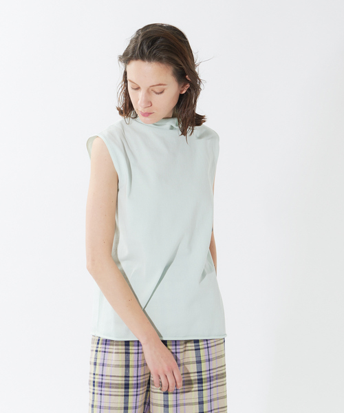 *Detail*春夏らしいノースリーブニットが登場。 タートルネックで上品且つ大人っぽい印象に。 着るだけで形が完成するタートルネックは首回りにニュアンスをプラスし、こなれた印象に。 素材にもこだわり、コットンに強ストレッチを効かせ、着心地も抜群。 ドライタッチ素材でシーズンムードもプラス。 肌ざわりが良くまた透けにくいのも嬉しいポイント。 *Coordinate* きれいな表面感でお仕事使いはもちろん、デニム合わせで大人カジュアルな着こなしも叶います。 一枚着でもインナーでも活躍してくれること間違いなし! 同素材のカーディガン(No.32440041002)とアンサンブルでも着ていただけます。 オフホワイト モデル:H170 B77 W60 H86 着用サイズ:F セージグリーン モデル:H170 B77 W60 H86 着用サイズ:F チャコールグレー モデル:H170 B77 W60 H86 着用サイズ:F 洗濯:手洗い可