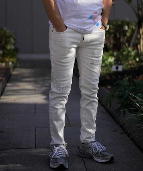 ★美脚テーパード+程良いクラッシュ!ホワイトデニム22SSモデル♪★ストレッチの効いたストレスフリーな穿き心地が魅力のホワイトデニムです。フィット感の良い腰周りに、アクセントとしてドローコードをあしらったイージーパンツ要素を含んだ一本です。最大の特徴であるシルエットは、膝から裾に掛かる美しいテーパードライン。またアンクル丈に設定することで足元をすっきり見せ、軽快な面持ちが特徴的な一本に仕上がっています。ボディはダメージ加工を施し、ブランドアイコンの折り鶴とペイズリーがプリントされた当て布、ステンシルが施されたドローコードなどディテールワークも満載。左ももから裾にかけてさりげなく入った同色(白色)のブランドロゴもポイントです。※白地に白のロゴプリントなので画像ではわかりづらくなっております。大人のカジュアルスタイルを格上げするデニムパンツを是非お試し下さい。【1PIU1UGUALE3 RELAX/ウノピゥ ウノ ウグァーレ トレ リラックス】"極上の普段着"としてファッショニスタに愛されてやまない、1PIU1UGUALE3RELAX "至高" "究極"への挑戦を胸にデザイナー自らが厳選し、着る者に高揚と感動を齎す"一着入魂"された作品で知られるTomohiro Ozawa のプライベートコレクション、1PIU1UGUALE3のカジュアルウェアラインである。 服の価値を知る玄人からこそ絶対的な支持を受ける、リラックスラインならではの"究極の着心地"を是非体感してほしい。