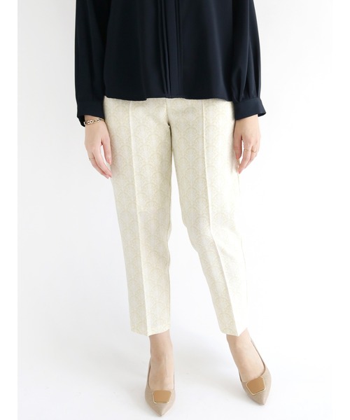 センタープレス入りのテーパードシルエットが美脚を叶えてくれるパンツ。 クラシカルなアラベスク柄でアクセントをプラスした一枚です。ウエスト後ろはゴム仕様で締め付け感もなし! コーデにプラスワンするだけで着映え効果抜群のアイテムです。 ★《お気に入り登録》でお得な情報をGET★ ① 商品ページ内のハートマークをクリック! ② 以下通知が受け取れます! 「再入荷」「ラスト1点」「特別セール」etc.. \ブランド、ショップのお気に入りも是非!/