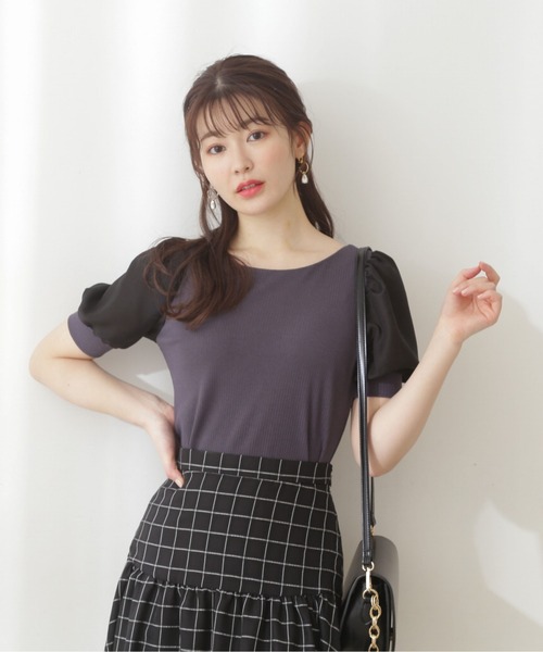 【商品特徴】トレンド感のある異素材ミックスのリブテレコトップスです。すっきり開いたネックラインでデコルテを綺麗に見せてくれます。身頃はすっきりとしたシルエットのリブテレコ素材。袖は少しシアー感のある素材を使用し、抜け感のある可愛らしいポイントをプラスしながら、二の腕をふんわり隠して着られます。プロポオリジナルの色味とさらりとした素材を使用しています。後ろネックは肌見えする涙開きにボタン付き。【スタイリング】無地や花柄スカートとも相性抜群です。スカートのデザインをタイト、マーメイドライン、フレアシルエットまで着回しできます。<商品のお気に入り登録>お気に入りアイテムの値下げ・再入荷・在庫1点などの通知を受け取ることができる便利機能ですので気に入ったアイテムはお気に入り登録がおすすめ!<ショップのお気に入り登録>新商品や再入荷、セール、クーポン配布などお得な情報を受け取ることができます。●撮影はサンプル商品で行っている為、仕様とサイズが異なる場合がございます。●スタジオ及び屋外で撮影した着用画像は、光の当たり具合で色味が違って見える場合があります。予めご了承ください。