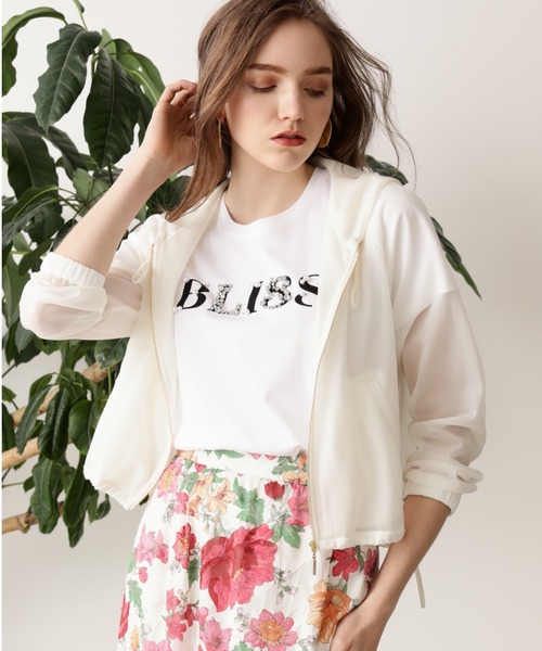 シアー素材のジップアップフーディです。ラグランスリーブで、ゆとりを持たせたボディに、コンパクトな丈感が、スカートやロングワンピと相性の良い一枚です。緩やかにつけた前後差や、ゴールドの付属使いなど、カジュアルな中にも女らしさがあります。裾や袖にはシフォンを挟むなど、ディテールにも工夫を凝らし、見栄えにもこだわりました。【素材説明】糸や組織で独特なシボ感を表現した、繊細な合繊シアー素材です。【商品特性】裏地なし/前金属ファスナー明き/裾ドロスト入り/袖口ゴム入り/ストレッチ有