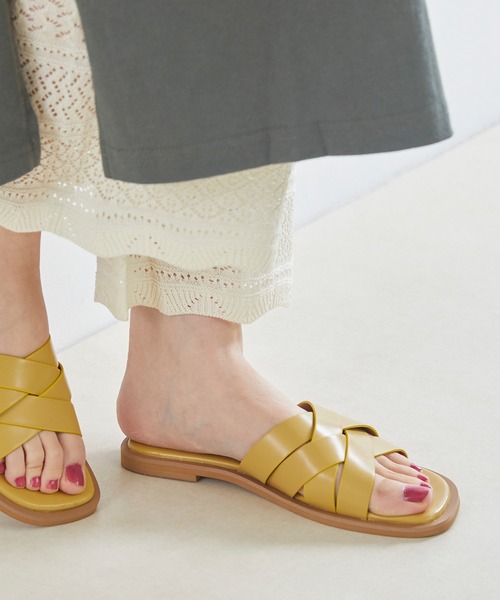 『大きめに編み込まれたアッパーデザインが目を引く スクエアトゥ 編み込み サンダル』つま先、かかと部分がスクエアトゥになっており、今季のトレンドが詰め込まれた一足です。シンプルでありながらも大きめに編み込まれたアッパーデザインが目を引くサンダル。<ポイント>1.滑りにくいアウトソールアウトソールは合成ゴム素材を使用。表面んを細かく削るバフ掛け加工を施しているので滑りにくく安心して歩けます。2.疲れにくいローヒールペタンコすぎないローヒールなので長時間履いても疲れにくくラクチン。3.ホールド感のあるアッパー甲を覆うアッパーはホールド感もあり、柔らかく足当たりもいい。=============◆サイズ選びに困っていませんか?\スタッフが試着してみました!/▼もりん / 足長:22.0cm【E】選ぶサイズ⇒SSは全体的にピッタリ。つま先ゆとり約10㎜で踵は約10㎜はみ出る。Mはやや緩めのピッタリ。つま先ゆとり約10㎜、踵はゆとりなし。▼きよこ / 足長:23.0cm【E】選ぶサイズ⇒MМは全体的にピッタリ。つま先と踵にゆとり無し。甲周りのフィット感の好みはSだが、足裏のフィット感でМを選ぶ。▼きっちん / 足長:24.0cm【D】選ぶサイズ⇒LLは全体的にピッタリ。つま先ゆとり約5㎜、踵は約10㎜はみ出る。LLもストラップはピッタリだが、踵が約10㎜余る。※足の形には個人差があります。スタッフ試着感想は参考程度にお考え下さい。============= 【機能性】:痛くない 歩きやすい 疲れない 脱ぎやすい 履きやすい やわらかい 柔らかい【シーン】:カジュアル 旅行 お出かけ おでかけ デート 散歩 トラベル 公園 ショッピング 海 ビーチ プール【デザイン】:スクエアトゥ スクエア コバ クロスベルト 編み込み 編み フラットヒール フラット スライドサンダル【おすすめカラー】:アイボリー ブラック ベージュ イエロー ブラウン=============◆アイテムスペック▼サイズ【SS(21.0~21.5cm)】足長(木型):22cm/足幅(木型):7.9cm【S(22.0~22.5cm)】足長(木型):23cm/足幅(木型):8cm【M(23.0~23.5cm)】足長(木型):24cm/足幅(木型):8.1cm【L(24.0~24.5cm)】足長(木型):25cm/足幅(木型):8.2cm【LL(25.0~25.5cm)】足長(木型):26cm/足幅(木型):8.3cm【LLL(26.0~26.5cm)】足長(木型):27cm/足幅(木型):8.4cm※掲載サイズは、靴のラスト(木型)のデータです。手作りの商品の為、製造段階で個体差が生じます。素材:合成皮革片足重量:約215g※生産時期により、色合い、風合い、質感に差が生じる場合があります。