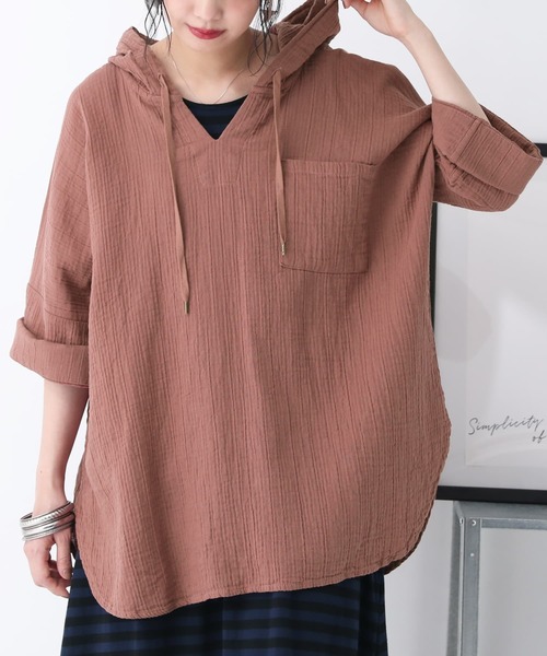 『着た瞬間、虜になる。』風合い溢れるシワ感が魅力の、ダブルガーゼパーカー♪肌触り抜群の柔らかなコットン混のダブルガーゼ生地は、肌に接する面積が少なく、さらっとした着心地を叶えてくれます。デコルテをスッキリ魅せるキーネックデザインに、ゆるっとシルエット&ラウンドヘムラインで抜け感のあるラフな着こなしに。2段階で折り返しやすい仕様の袖だから、その日の気分に合わせてアレンジを楽しめます♪今、好きな物、興味あることを自由な発想で表現できる≪ n'OrLABEL ≫。「実用性と機能性、そして遊び感覚」、多面性を楽しめるピュアでモードなデザインライン。着心地もお洒落も譲らない≪n'OrLABEL≫ダブルガーゼキーネックパーカーです。